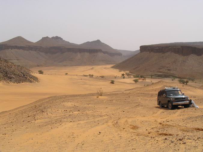 Welcome to my Adrar slideshow. The Adrar is a region in north central Mauritania. The geography is a stunning variety of dune, rock formations and wide open spaces. Atar is the regional capital, but my first stop was Oudane, an ancient town about three hours north of there. I was told this was the one non-sunny morning of the year, so the pictures aren't what they could be. Still, you get the general idea.